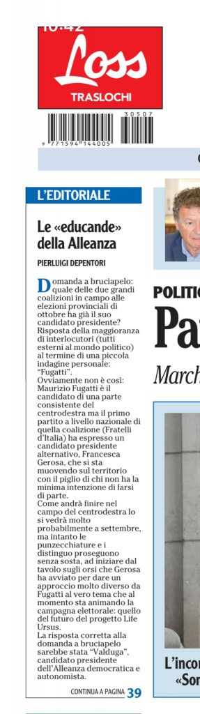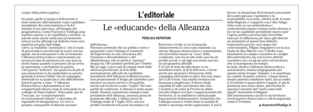 UN QUOTIDIANO DI TRENTO, L’ADIGE, E’ UN PO’ “PARTICOLARE”