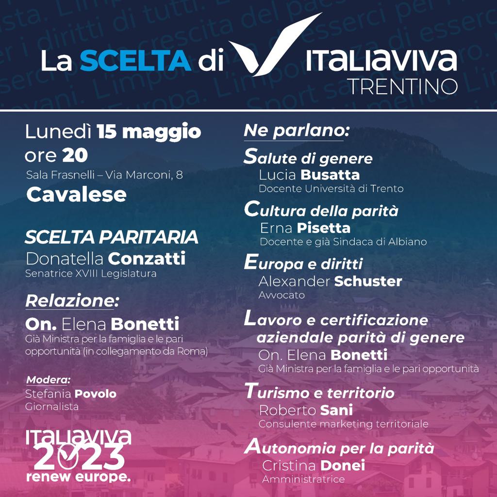 Noi di ITALIA VIVA TRENTINO siamo contro questo novello inganno: infatti facciamo parte della coalizione ADA-ALLEANZA DEMOCRATICA E AUTONOMISTA e aderiamo al progetto europeo RENEW EUROPE. Su queste basi, nel nostro tour per le valli del Trentino, affrontiamo i singoli piccoli grandi problemi locali e allo stesso tempo ci proponiamo come promotori della difesa della nostra AUTONOMIA SPECIALE AMMINISTRATIVA e anche come VERI EUROPEISTI perchè i problemi locali si risolvono se si ha LIBERTA’ DI SCELTA, in un Paese che a sua volta abbia scelto di contare sul piano internazionale in quanto parte di una UE POLITICA.