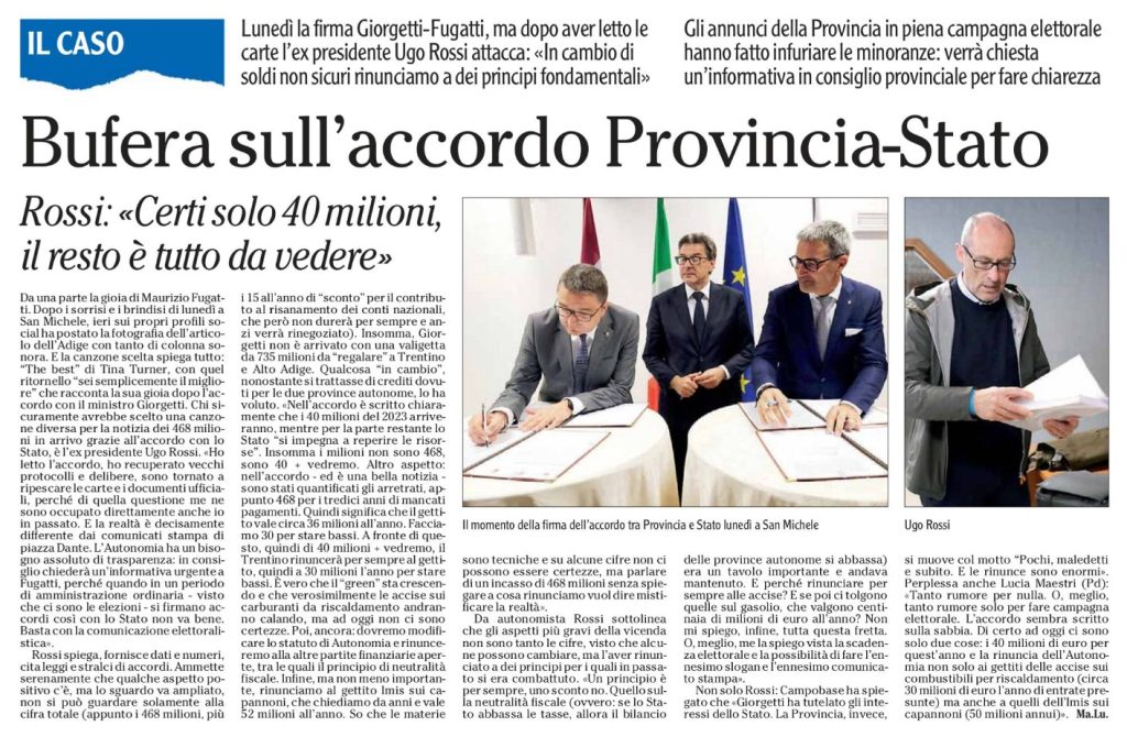 NON E’ ORO QUELLO CHE LA DESTRA TRENTINA VORREBBE FARE RILUCERE …