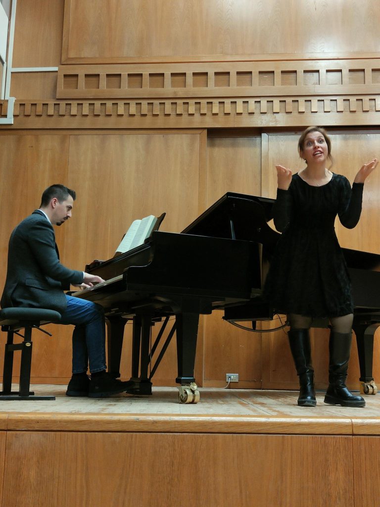 Prima della riunione, un sipario musicale. La nostra socia FEDERICA FANIZZA ha intervistato – con domande molto interessanti e chiarificatrici del rapporto persona/canto – il soprano pluripremiato FRANCESCA CUCUZZA, la quale ha magistralmente eseguito alcuni brani mozartiani. Al piano il nostro Vicepresidente, Antonio Vicentini. In sala il famoso basso NICOLA ULIVIERI che ha offerto alla cantante un mazzo di fiori.