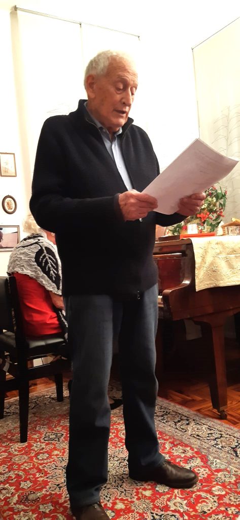 Ieri sera, la serata degli Auguri natalizi, articolata per l’occasione su di un unico, ricco evento musical canoro dedicato al Natale, con l’aggiunta di una poesia (mia) e di un brano di prosa (Alfonso). La musica: il pianoforte di Cristina a la chitarra di Patrick. Le voci: Giovanna, Luciano, Patrick, Alonso.