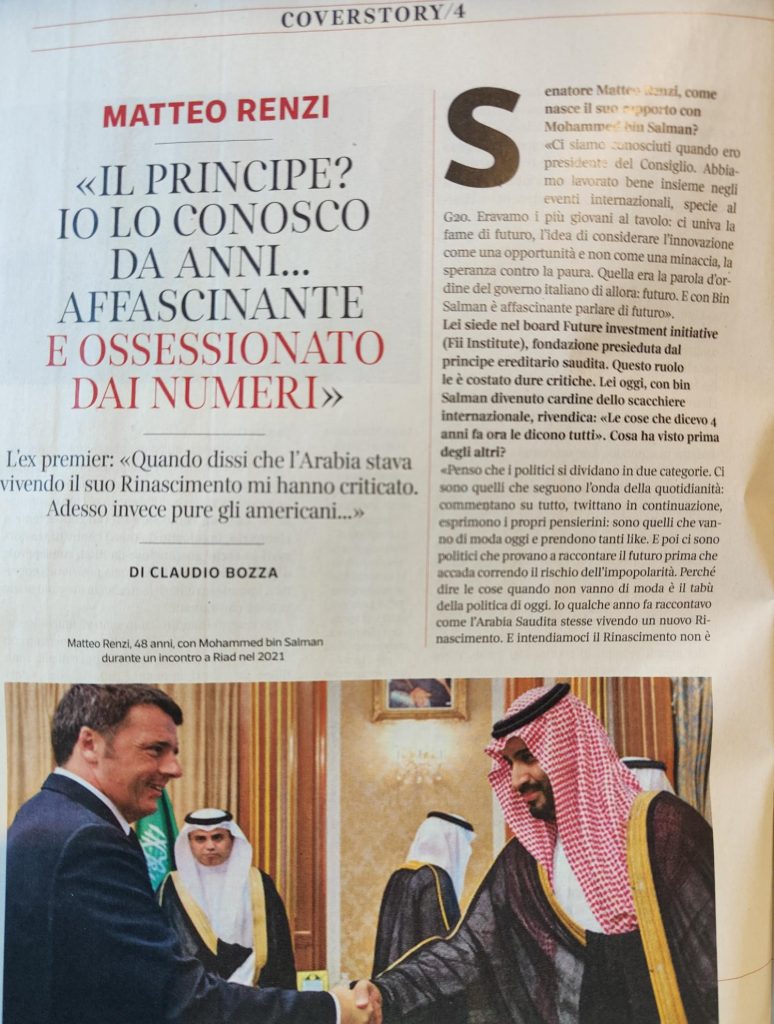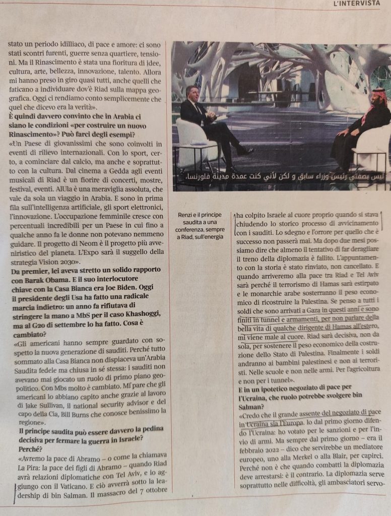 Trovo poi un bell’inserto sull’Arabia Saudita ed una interessante intervista al Senatore Matteo Renzi. Tutta da leggere!