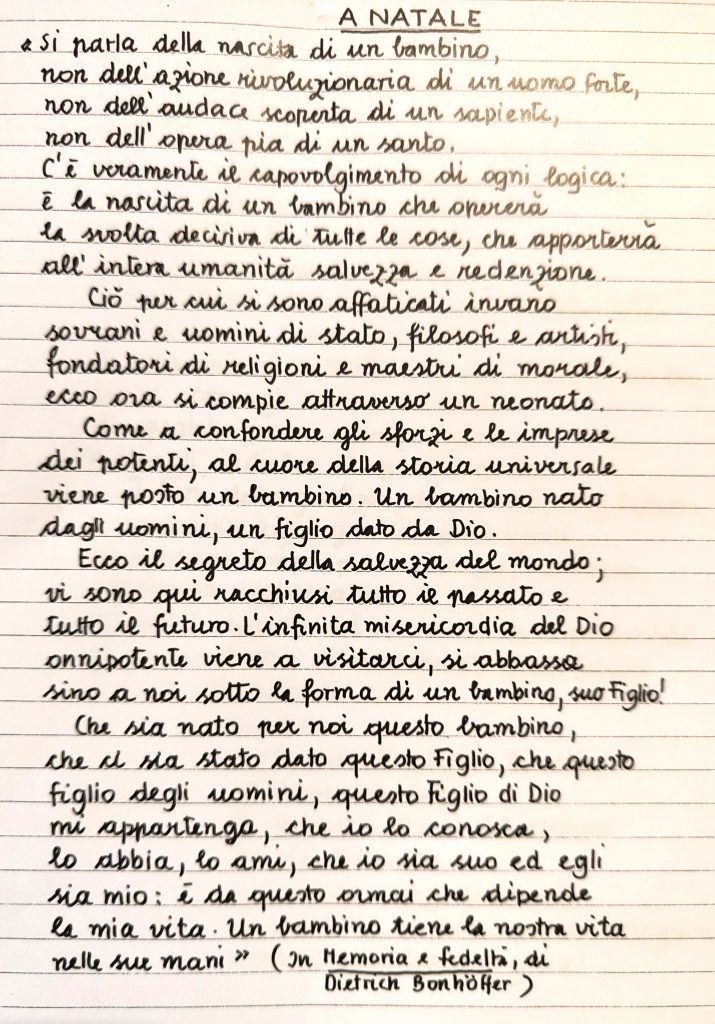 P.S.: Marcello ci ha anche dato copia del passo di Dietrich Bonhoeffer che ha distribuito alla S. Messa di Natale.