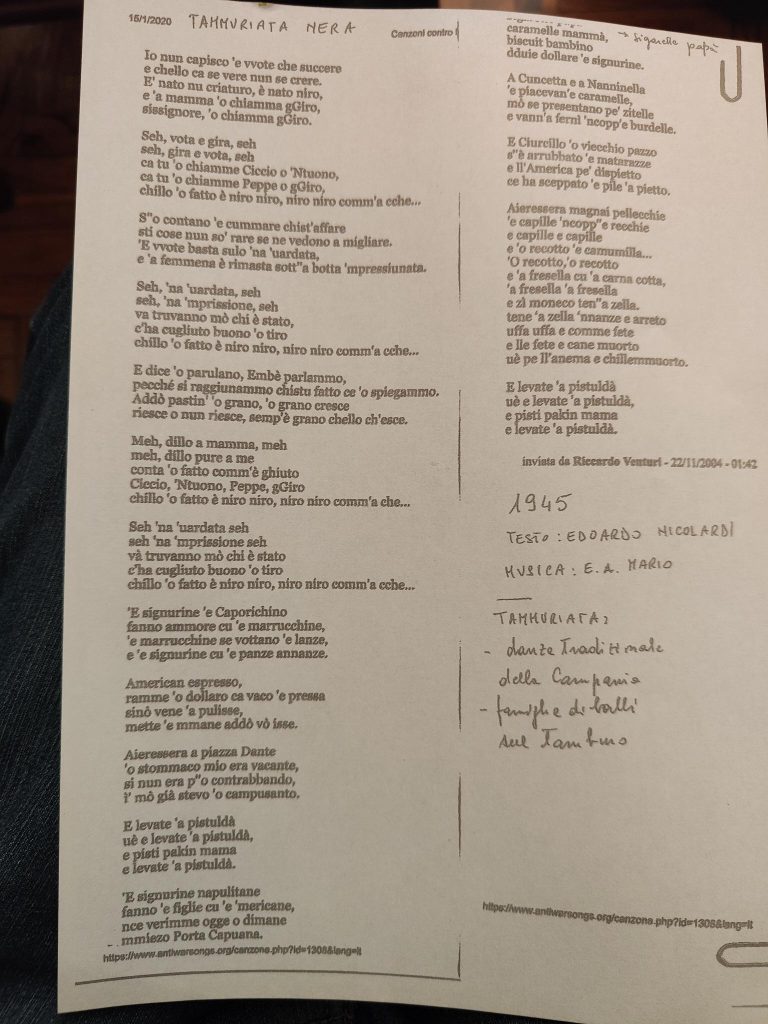 Cosa? I titoli delle arie classiche e delle canzoni di ieri sera? No raga, preferisco allegarvi la foto della canzone napoletana cantata in coro da tutti come Gran Finale: uno sfogo per cercare di scaricare le tante tensioni dei nostri tempi!