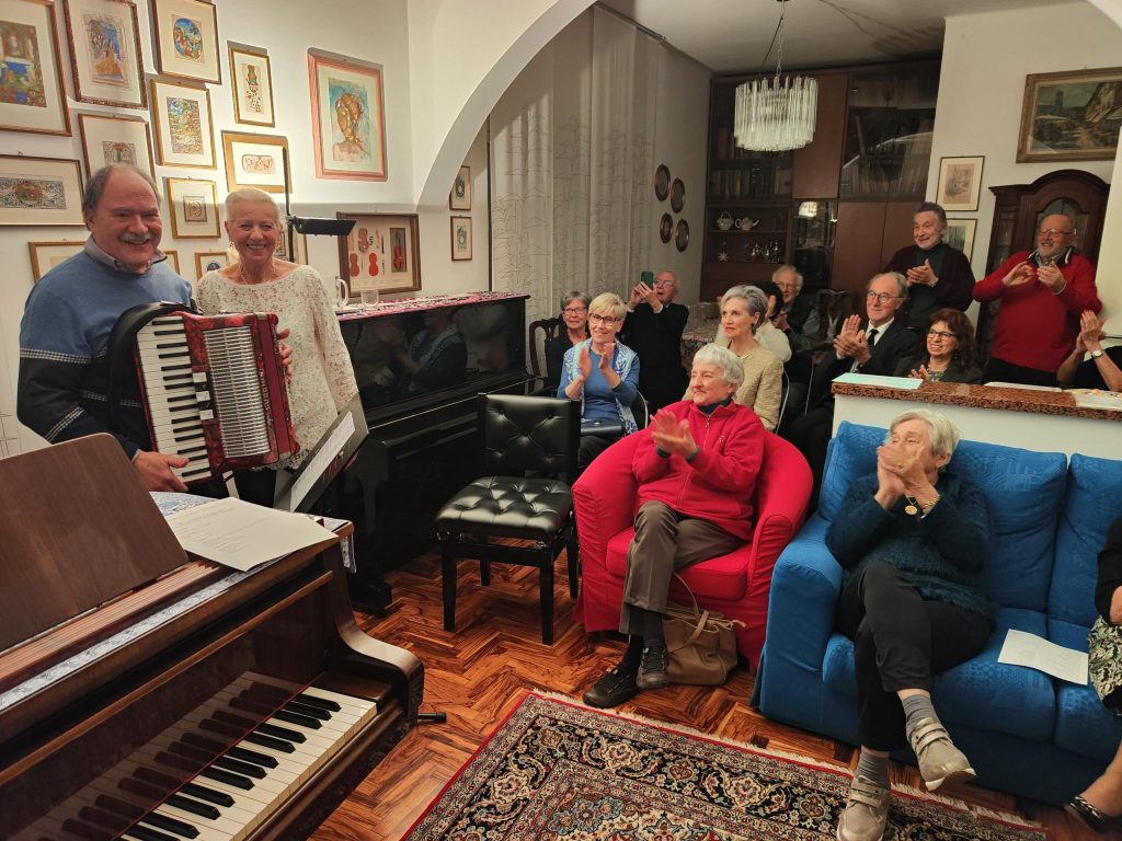 “Accademia delle Muse” il nostro circolo culturale privato che vive ormai il suo 12° anno! Ci riuniamo 9 mesi l’anno, 1 riunione al mese, 2 eventi a riunione, cena in piedi compresa: fate voi il calcolo!Ci si iscrive con il passa parola, nessuna formalità: ognuno offre l’arte sua: musica, storia, letture, viaggi, pittura, canto, poesia, etc..
