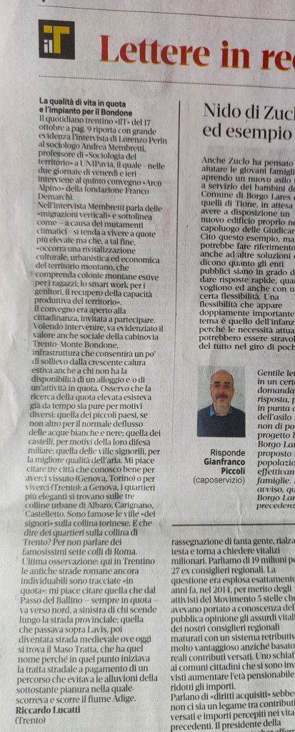 (Quotidiano trentino ilT del 20 ottobre 2024 pag. 4)