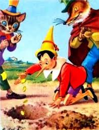 “Pinocchio”, libro per bambini e – aggiungo io – anche per adulti! Infatti Collodi è stato il primo a metterci in guardia contro la truffa delle CRIPTOVALUTEe, quando raccontò dei due ladroni che convinsero l’ingenuo Pinocchio a sotterrare le sue monete d’oro! Infatti, a loro dire, quei “semi” avrebbero fatto crescere un albero che avrebbe prodotto come frutti tante altre monete d’oro, molte di più di quelle che l’ingenuo Pinocchi stava seppellendo. E tutto questo per poi tornare di nascosto a dissotterrarle e a rubarle.