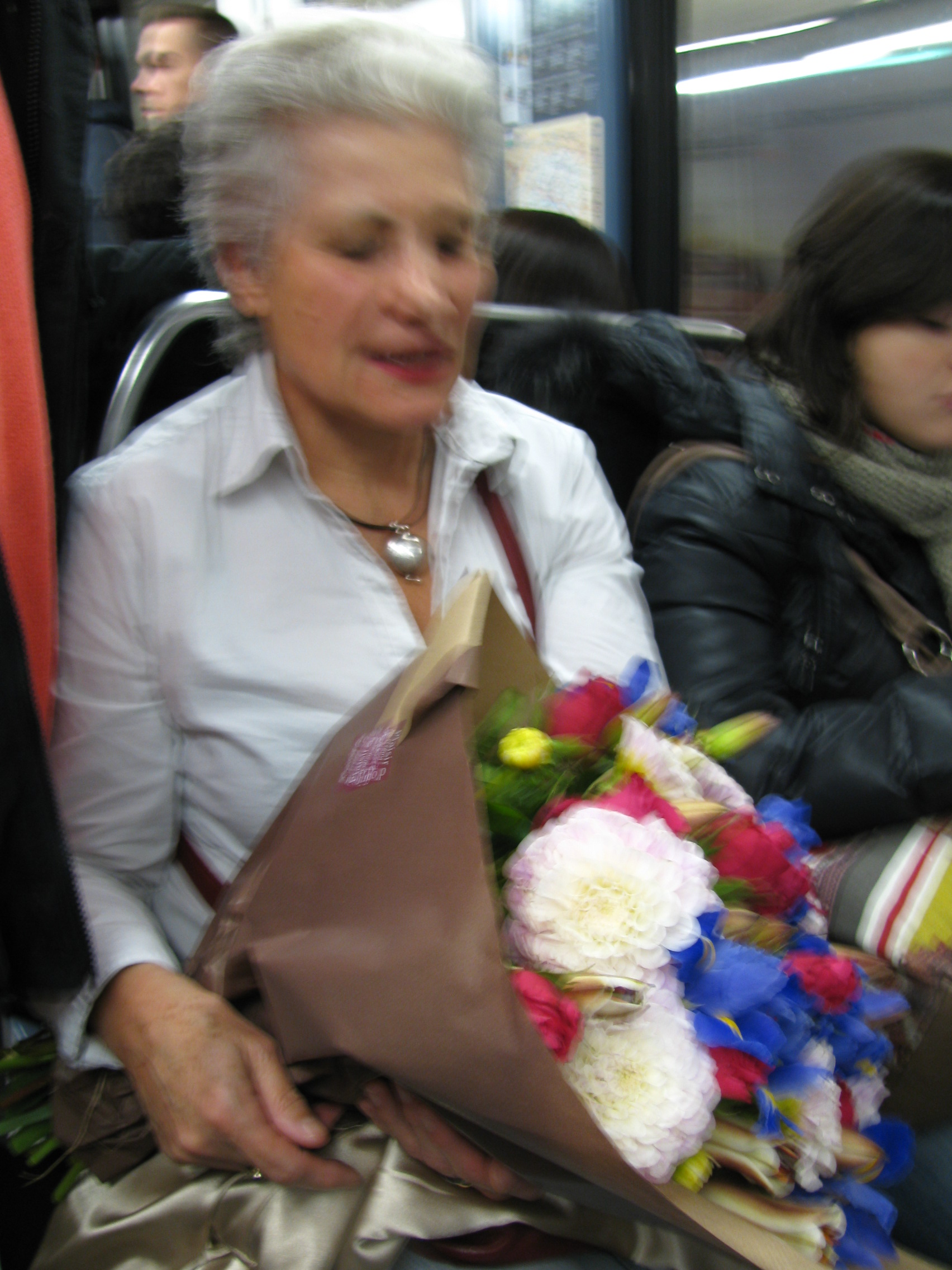 Alcuni di persone di colore sono statuari. Peccato non poterli fotografare. Altri sono visi dormienti, di persone che stanche dal lavoro, cercano di recuperare anche in metro. Molte le cuffie alle orecchie. Tutti i visi svegli, comunque, guardano lontano, distaccati dall’ambiente in cui si trovano. Quasi estraniati. Il mio no. E’ lì apposta per indagare e conoscere la città anche attraverso i visi di chi la abita. Dimenticavo: un viso con i fiori, in autunno, in metro …
