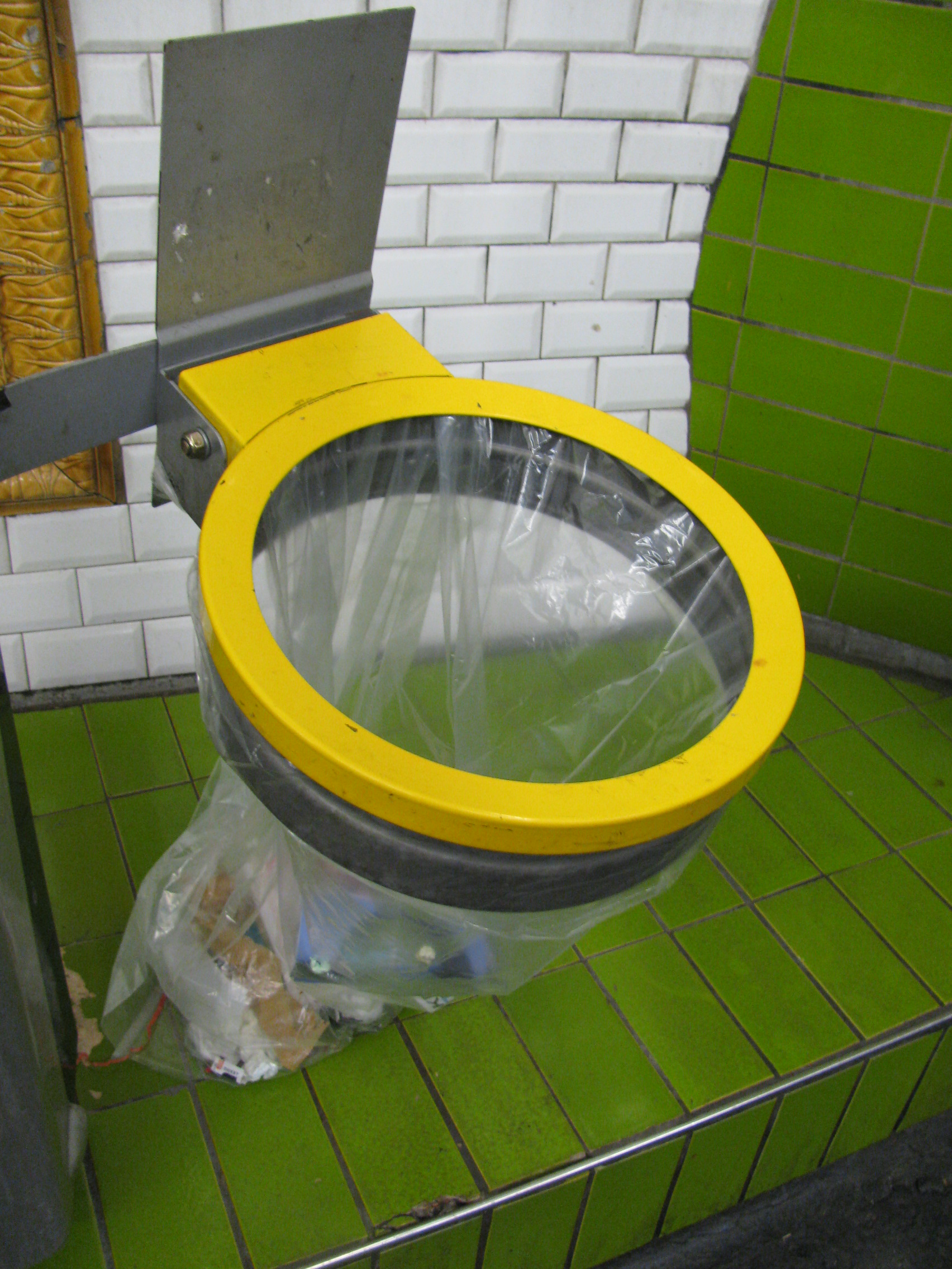 Molti. Un semplice sacchetto di plastica. Alla sommità una piastrina di metallo sulla quale spegnere le sigarette, prima di buttare la cicca, ben spenta, nel sacco (e non per terra!) senza danneggiarlo. Non abbiamo visto nemmeno un sacco bruciato. Il fatto che la cosa mi abbia colpito avrà pure un significato!