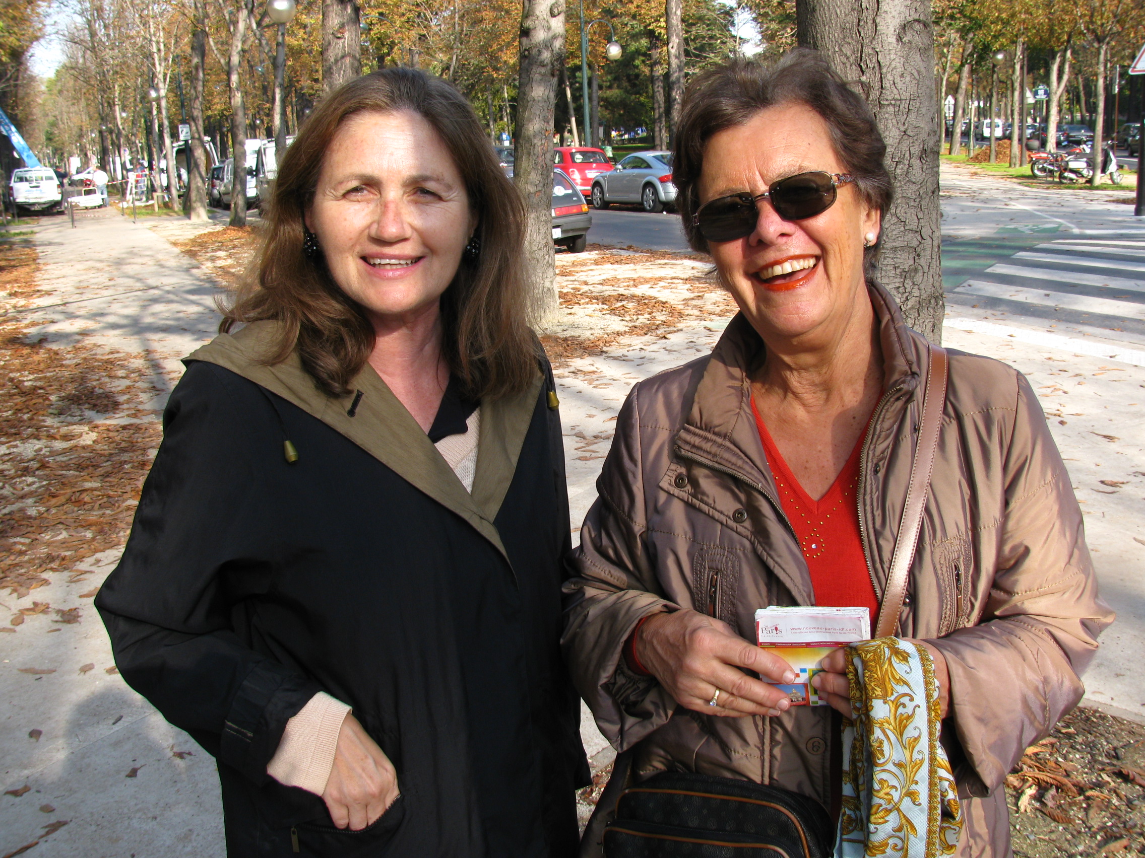 Sei un po’ in difficoltà con la tua mappa della città ? In occasioni diverse ben tre persone si sono fermate spontaneamente ad aiutarci. Una l’ho anche fotografata, Giuliana, così gentile! Eravamo nel quartiere Trocadero che però i Parigini chiamano Passy, reduci da una bellissima passeggiata con spuntino al sole del Bois de Boulogne, alla ricerca della fermata della metropolitana. Ci vede un po’ imbranatelli, si ferma spontaneamente, ci indica la soluzione, sorridendo. E’ italiana e vive a Parigi da dieci anni. Abita in zona. Facciamo amicizia (o forse amicizia è un parola troppo impegnativa? Ma mi è venuta così, di getto! Io le cose me le sento … e se me le sento, mi lascio andare. Fino ad oggi mi è andata sempre bene e sono sicuro che sarà così anche questa volta). Le offro di fotografarla insieme a Maria Teresa per poi inserire la foto sul blog. Accetta. Ecco, detto, fatto. Grazie Giuliana! Fatti viva con un tuo commento qui sotto al post! L’avevi promesso! Fra l’altro ti ho lasciato un mio biglietto da visita di blogger …
