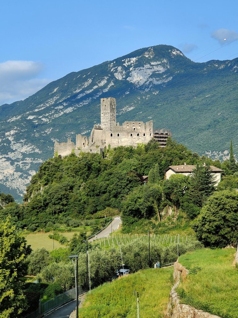 Da qui discesina ripida verso e fino a Drena e al suo bel castello che si raggiungono all’immissione sulla SP 84. Discesa veloce fino al tornante a sinistra da cui l’abbandono per voltare a destra sulla salitella di 3 km della SP 214 la quale a sinistra costeggia le Marocche (una frana simile alla famosa ruina dantesca vicino a Rovereto, v. foto di repertorio).