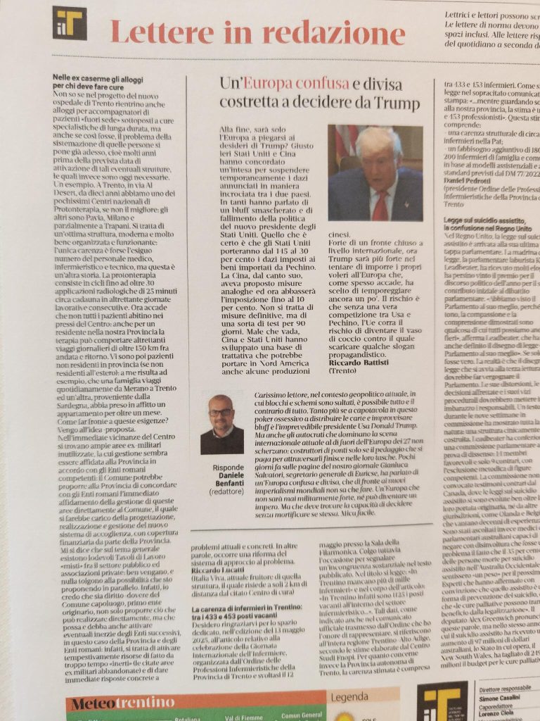 pubblicato da: Riccardo Lucatti - 10 Maggio, 2025 @ 10:15 am(Mia lettera odierna al quotidiano di Trento ilT)