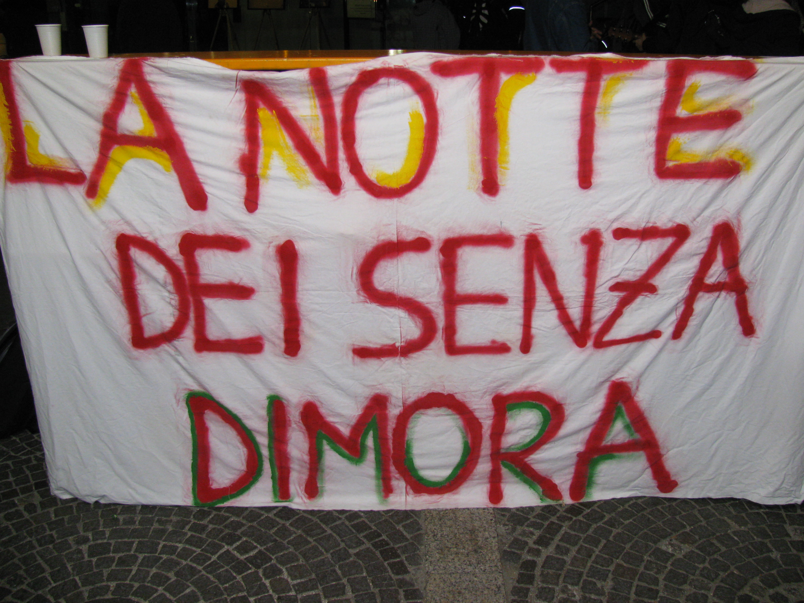 Ieri sera sono stato in Piazza Dante, a Trento, alla manifestazione di un gruppo di volontariato, per sollecitare la soluzione del problema delle notti dei senza tetto, che dovrebbero essere calde da subito. Una manifestazione per sollecitare le Autorità … ecco, “Autorità “, questo termine stona, le Autorità non dovrebbero porsi in alto, sopra la gente, ma in basso, per servire la gente. Come fece Gesù che “senza dimora†ci nacque! Ma questa è un’altra storia …