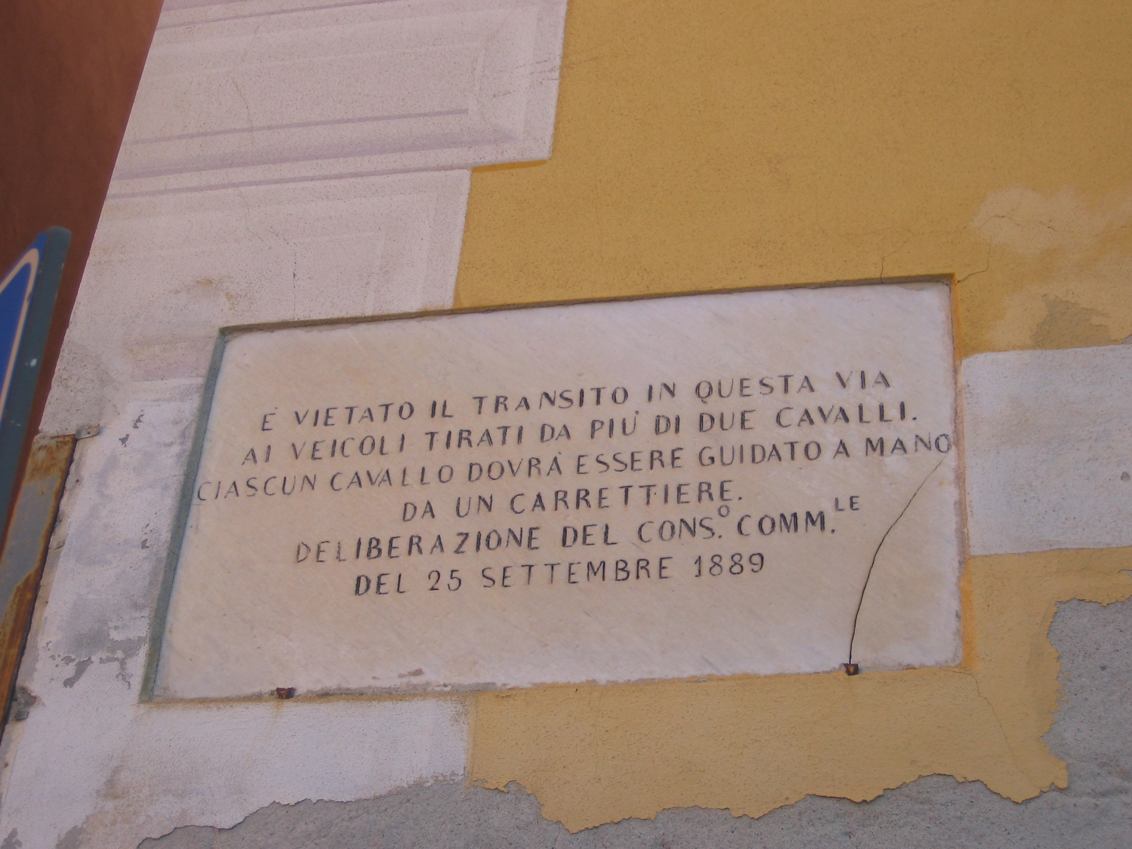 La storia / è passata di qui. / Ha lasciato il suo umore / nelle pietre levigate / nelle ombre / requenti /negli stretti ritagli di cielo /nelle case addossate. / Ascolta la voce (di quello che vedi. /Sofferma il pensiero /su chi riempie di sé / la piccola via. / Persone diverse /che un antico crogiuolo / difende /dal moderno artiglio rapace, / confusa umanità / padrona di un mondo / che tu / passante distratto / puoi solo violare / oppure / cercar di capire / in silenzio / ed amare.