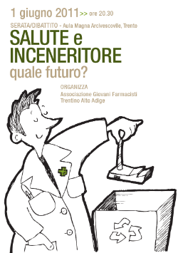 L’associazione Giovani Farmacisti del Trentino Alto Adige organizza per mercoledA� 1 giugno nell’Aula Magna dell’Arcivescovile il dibattito dal titolo “Salute e Inceneritore, Quale Futuro“. Interverranno: Giuseppe Miserotti medico di base, presidente ordine dei medici di Piacenza, Gustavo Mazzi medico e vicepresidente iSDe Friuli venezia Giulia, Fabrizio DemattA? chimico ambientale, direttivo ordine dei chimici Trentino Alto Adige. Appuntamento alle 20.30