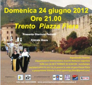Domenica 24 giugno in Piazza Fiera a Trento A? in programma un evento originale e divertente. Appuntamento alle ore 21.00 per una partita di scacchi viventi in costumi d’epoca con la Compagnia Marvi di Cittadellla.