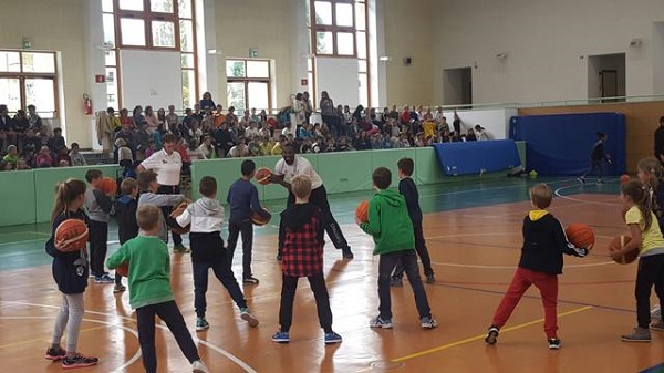 Lasciando Marco e Simone a prepararsi per l’incontro, mi sono unitoA�a Luca Lechthaler, Dustin Hogue e al team manager Michael Robinson,A�arrivati pochi minuti dopo al palazzetto designato per l’incontro. In attesa di entrare in palestra,A�fra uno scherzo di Dustin e uno scambio di battute con Luca su quanto si senta a casa con le montagne piA? vicine rispetto all’orizzonte, un vero e proprio boato precede l’ingresso in palestra dei giocatori. LA� fra esercizi, high five, passaggi e improbabili tentativi di metA� campo,A�i minuti volano verso il momento preferito dai ragazzi: da una parte un tavolino, una penna, una sedia e Luca a firmare autografi ad una fila piA? o meno ordinata. Nell’altra metA� campo Dustin, letteralmente accerchiato e incalzato dai piA? temerari a confrontarsi inA�inglese con un bel “doA�you come from New York? Wow!“.