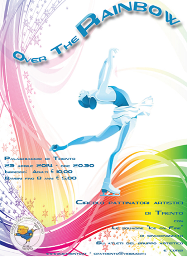 MercoledA� 23 aprile, alle 20.30, il ghiaccio del Palaghiaie di Trento, in Via Fersina si colorerA� con le tinte dell’arcobaleno, grazie allo spettacolo a�?Over the Rainbowa�? portato in pista dagli atleti agonisti del gruppo artistico, dalle tre squadre a�?Ice on Firea�? di sincronizzato e da tutti i giovanissimi dell’avviamento del Circolo Pattinatori Artistici di Trento, per la regia del coach Gabriele Minchio. Le lame scorreranno veloci al ritmo della musica, dedicata nei vari brani musicali ai diversi colori, da Rosso di Mina, a True Colours di Cindy Lauper, a Pink Panther e all’indimenticabile Over the Rainbow cantata da Judy Garland. Un Ice-show da non perdere, che non mancherA� di far apprezzare a tutti uno sport spettacolare e dagli alti contenuti tecnici ed espressivi quale il pattinaggio di figura.