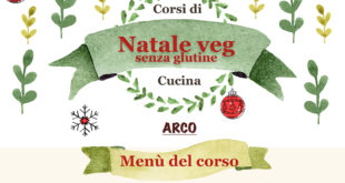 VENERDì 14 DICEMBRE, ORE 19.30, ARCO MENU’ DI NATALE VEG – CORSO DI CUCINA VEGAN SENZA GLUTINE Il corso di cucina dedicato al Menù di Natale si svolgerà anche ad Arco venerdì 14 dicembre Tutte le ricette sono nuove: – Insalata con finocchi, arance e melagrana – Pasticcio di crespelle …