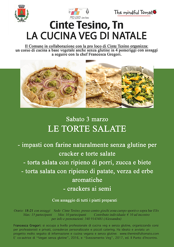 Un nuovo corso sulle torte salate a base vegetale e senza glutine. Organizzato in collaborazione con la Pro Loco ed il Comune di di Cinte Tesino, il corso si svolgerA� sabato prossimo dalle 18.00 alle 21.00.