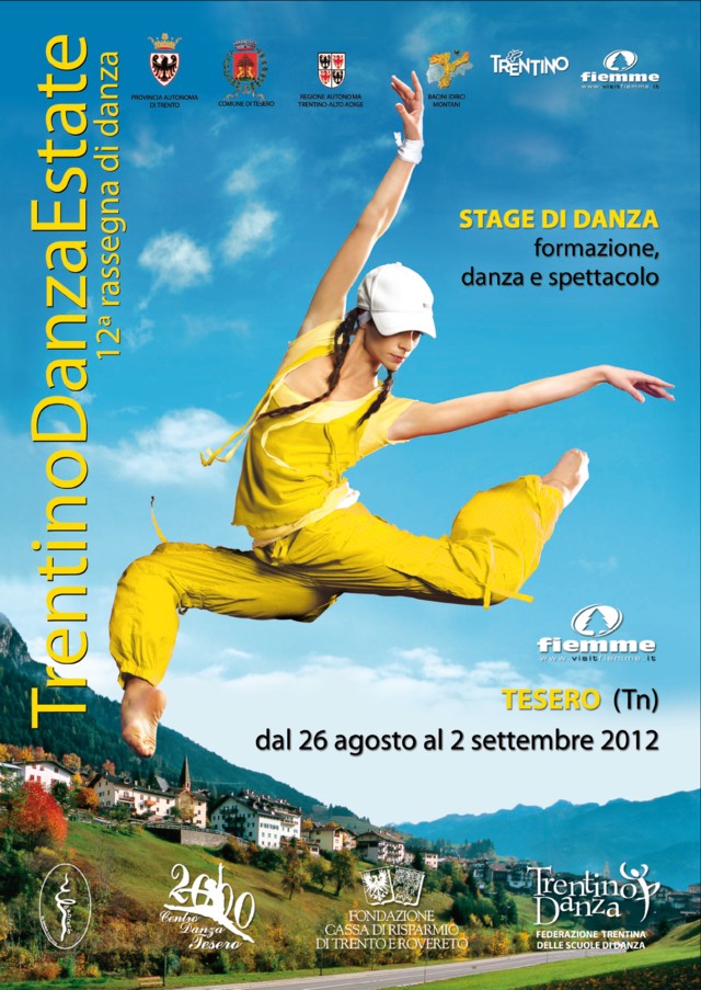 Puntuale come ormai accade dal dodici anni, A? pronta la nuova edizione Trentino Danza Estate 2012, stage di danza, di formazione e spettacolo che questa��anno si svolgerA� dal 26 agosto al 1 settembre come sempre a Tesero in Val di Fiemme.