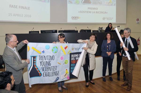 A�Gli studenti e le studentesse che hanno partecipato a�� spiega Giulia Selmi, coordinatrice della��iniziativa a�� hanno avuto la��occasione di acquisire una maggiore familiaritA� con il mondo scientifico e con il lavoro di gruppo. Hanno vestito i panni dei ricercatori e delle ricercatrici confrontandosi con il metodo sperimentaleA�. Il progetto A? partito a ottobre dello scorso anno con lo studio dei progetti nelle varie classi. Negli open day, che si sono tenuti nelle scuole da dicembre, ogni scuola ha presentato i propri progetti e una giuria di esperti/e del territorio ha seleziona quelli ritenuti migliori. Fino alla fase conclusiva di oggi. Nel pomeriggio le classi hanno esposto i progetti negli stand allestiti al Dipartimento e poi li hanno illustrati davanti alla giuria, che li ha valutati tenendo conto di alcuni parametri: problematiche affrontate, progettazione e metodologia seguita, qualitA� della��esecuzione (raccolta dati, analisi ed interpretazione), creativitA� ed efficacia della presentazione, a prescindere dalla disciplina. Tutte e tre le scuole hanno ricevuto dalle mani del rettore della��UniversitA� di Trento, Paolo Collini, il premio a�?Sostieni la ricerca – Trentino Young Scientists challengea�? con un buono acquisto per materiale scolastico offerto dalle Casse Rurali Trentine.