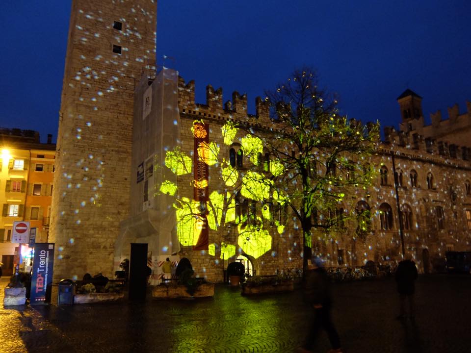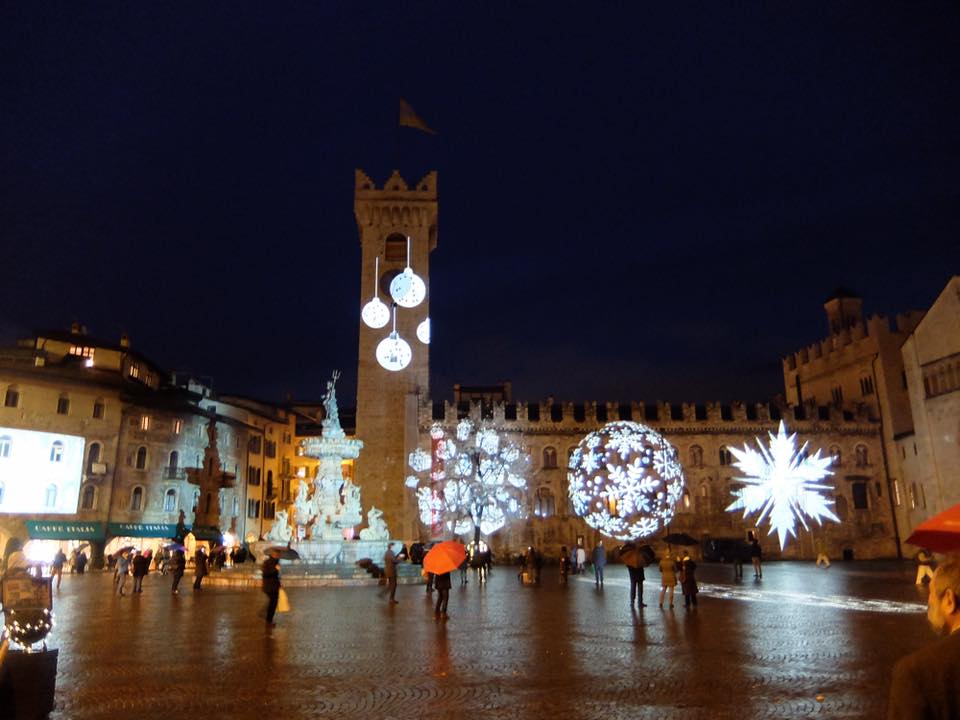 Una Piazza Duomo trasformata in uno spettacolo in continuo movimento, quello offerto dal comune di Trento per il periodo natalizio. Un gioco di luci sul palazzo diocesano in grado di lasciare a bocca aperta passanti e visitatori del mercatino.