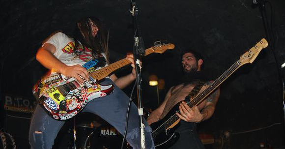Ennesima perla di questo festival sarA� la��esibizione alle 22 dei romagnoli Antares, una band che se la macchina del tempo potrebbe trasferire nel cuore degli anni a��80, si troverebbe senza dubbio sulle copertine di tutte le riviste rock e a�?hard&heavya�? del mondo. Difficile da spiegare cosa una delle loro esibizioni A? in grado di trasmettere: energia pura, onnipotenza sonora, stupore, rassegnazione nel constatare un livello irraggiungibile. Un sound che trasuda prima di tutto convinzione, in seguito precisione svizzera nonostante le vertiginose velocitA� raggiunte, e in ultimo a�?groovea�?, nonostante si stia parlando di un gruppo tra la��heavy metal e il punk hardcore. I soli di chitarra si susseguono instancabili al ritmo del battito da��ali di un colibrA� mentre una voce tra il melodico e il rauco lancia ritornelli che dal primo ascolto accompagneranno la giornata della��uditore fin dentro i sogni piA? imperscrutabili. La��ultimo album degli Antares, a�?Big Trouble in Appletowna�?, uscito nel 2011 e di recente stampato anche su vinile da a�?Rancore recordsa�?, racchiude tutto questo turbinio di emozioni senza tradire la��esibizione live. Uno show da vivere, senza paura, con le corna alzate.