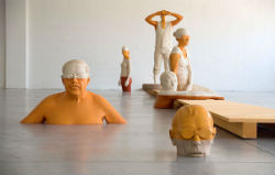 I suoi personaggi, sempre ad altezza naturale, non hanno riconoscibilitA�, connotazioni, ma vivono in una sorta di dimensione astratta. Eretti senza essere monumentali, sublimi senza essere eroici. Per attirare l’attenzione su di sA?, essi non hanno a disposizione che le loro pose: gesti minimi, al limite del banale e dell’insignificante, ma anche gesti che fanno degli sforzi estremi per esprimersi, per comunicare oltre la loro fisicitA�.