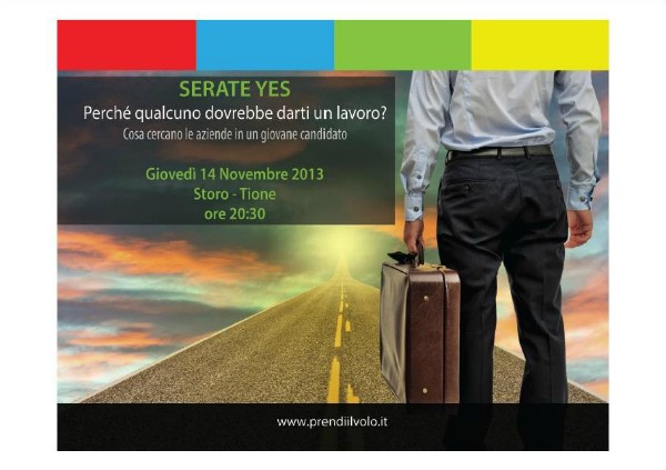 Nella��ambito del progetto YES, La Cassa Rurale organizza, in collaborazione con la ComunitA� delle Giudicarie, quattro serate di workshop sul lavoro giovanile, su come muoversi e orientarsi in questo mondo in continuo cambiamento.