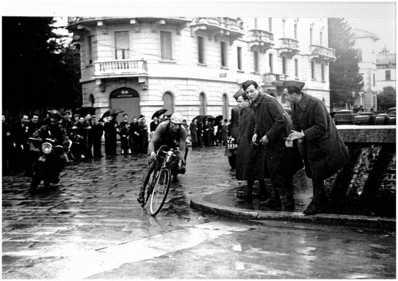 In mostra sono esposte una selezione di immagini tratte dal ricchissimo archivio fotografico opera di un ignoto professionista di Milano ed ereditate da Bruno Zenatti, originario di Brentonico, a sua volta fotografo nella città lombarda. Tra queste spicca quella di Gino Bartali in azione sotto la pioggia impegnato ad affrontare una curva sui pietroni viscidi.
