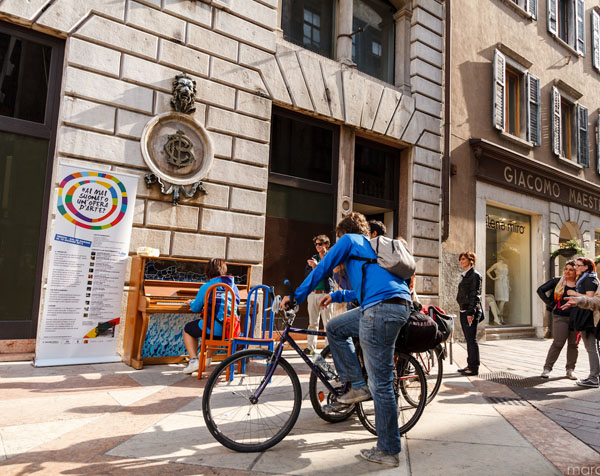 Dal 20 maggio al 5 giugno 2016 i pianoforti, forniti dalla storica ditta a�?Armonium Galvana�? di Egidio Galvan, accenderanno la cittA� con colori e note, con la��ormai consolidata formula che unisce arte, musica e la voglia dei passanti di mettersi alla prova, sperimentare, e donare un poa�� di tempo e le proprie doti a sA� stessi e alla cittA� di Trento.
