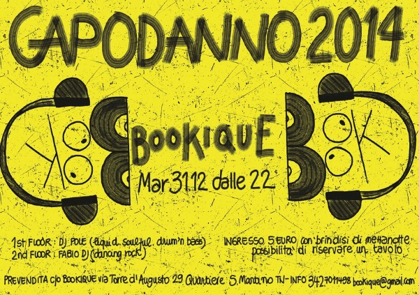 MartedA� 31 Dicembre, dalle ore 22 la Bookique organizza la sua festa di Capodanno 2014 all’insegna del buon divertimento.
