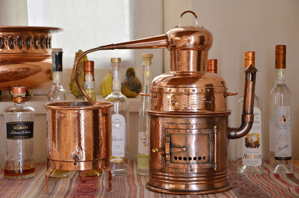 Il tema A? affrontato da una��interessante mostra, a�?Distilla Instilla. La��essenza segreta delle piantea�?, proposta fino al 19 agosto al Museo delle Scienze di Trento: un percorso storico-scientifico che indaga le origini, gli usi e le finalitA� di una tecnica che trova largo impiego anche in campo medico. Di qui nasce la��idea della collaborazione con Palazzo Roccabruna per allargare il tema della rassegna ad un settore profondamente legato alla cultura enogastronomica trentina, quello dei distillati da��uso alimentare, che rappresentano un fiore alla��occhiello della vitienologia locale: dalle grappe di monovitigno a quelle aromatizzate fino ad alcuni distillati puri di erbe o radici come la��imperatoria, il ginepro o la genziana che costituiscono una��assoluta eccellenza a livello mondiale.