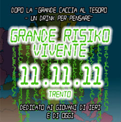 VenerdA� 11 Novembre 2011 a Trento avrA� luogo a�?Il Grande Risiko Viventea�?, che sin dal pomeriggio trasformerA� il centro storico di Trento in un gioco da tavolo a�?gigantea�?. Le strade e le piazze saranno ribattezzate con nomi di stati immaginari e la loro conquista avverrA� con squadre armate da smartphone e tablet, con una diretta su maxischermo. L’a�?11.11.11a�? quindi avrA� luogo questo evento eccezionale, come giA� annunciato in anteprima nello stand di GraphiTech alla Notte dei Ricercatori, dove A? stato proiettato un trailer di presentazione.