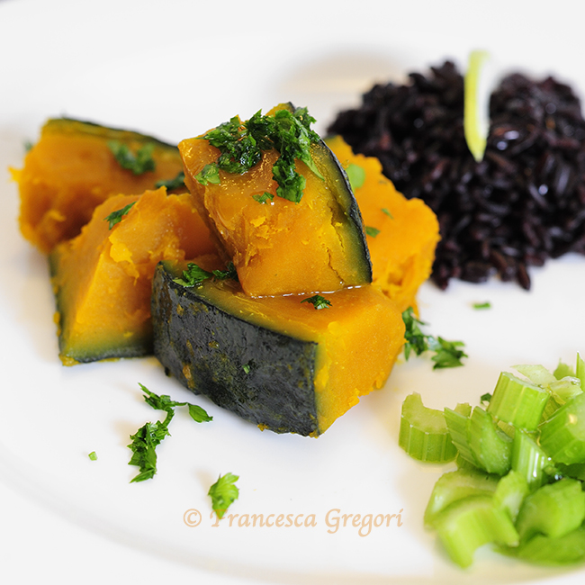 Sono di parte, lo ammetto. Adoro la zucca o, meglio, tutte le zucche. Di zucche, infatti, ne esistono molti tipi. Tra le piA? note e consumate troviamo le varietA� Delica e Butternut; ma a seconda del periodo dell’anno a queste due varietA� si aggiungono: la Violina, la Marina di Chioggia, la Hokkaido e molte altre ancora. Della zucca, purchA� biologica, si puA? consumare anche la buccia, che conferirA� fibra e colore alla preparazione. Una ricetta salata veloce consiste nel tagliare la zucca in pezzi di 3-4 cm, mantenendo la buccia, e lasciarla stufare a fuoco basso in una padella con olio, poca acqua, cipolla e sale. Alla fine si potrA� aggiungere del prezzemolo, rosmarino o altre erbe aromatiche e qualche goccia di Tamari A�e servire come contorno. In alternativa potete cuocerla in modo analogo in forno; si asciugherA� di piA? e rimarrA� ben in forma.