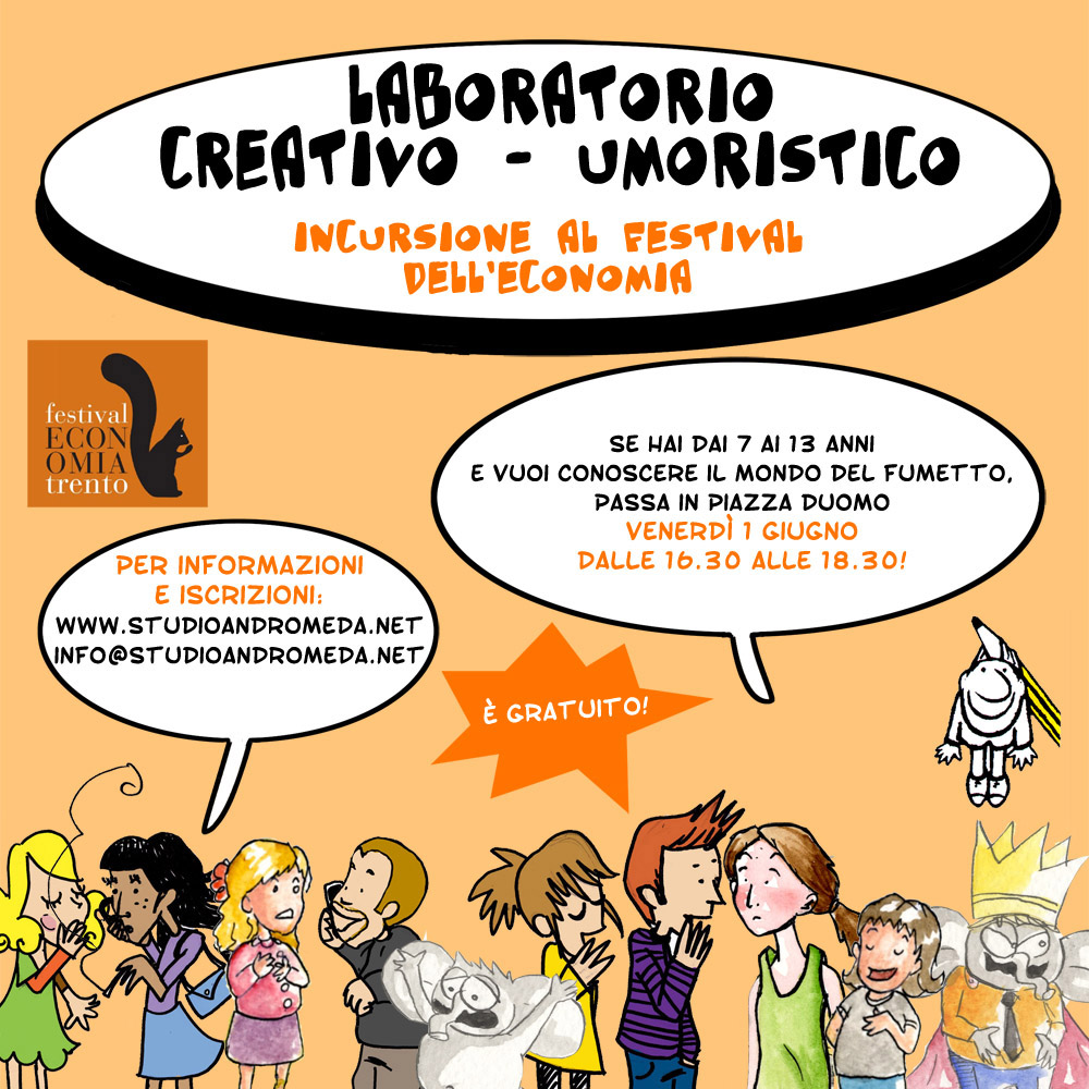Anche quest’anno loA�Studio d’Arte Andromeda sarA� presente al Festival dell’Economia in Piazza Duomo (Trento) dal 31 maggio al 3 giugno 2012.A�Durante tale occasione A? previsto un momento particolare ed imperdibile dedicato solo ai bambini.