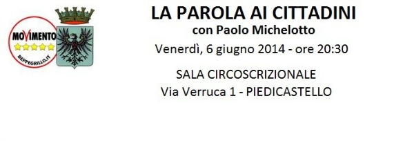 La parola ai cittadini con Paolo Michelotto. Ci si troverA� con la cittadinanza, per discutere dei vari problemi che gravitano attorno alla cittA� di Trento, sarA� un ottimo spunto per proporre idee e soluzioni in vista delle Amministrative del prossimo anno che vedranno coinvolti tanti altri comuni della nostra provincia.