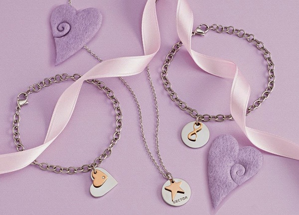 Braccialetti, collane, orecchini e gioielli che reinventano le forme classiche come cuori, stelle e farfalle con un tocco di personalitA� che si esalta soprattutto con l’utilizzo del rosa come colore di riferimento.