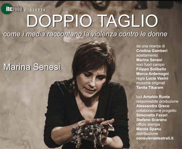 DOPPIO TAGLIO affronta la violenza sulle donne con uno sguardoA�trasversale: non il racconto della vittima, nA� quello di un testimoneA�o tanto meno del carnefice. Lo spettacolo parte dalla cronaca eA�analizza il racconto dei media, svelando alcuni meccanismi cheA�plasmano la nostra percezione del fatto e ci condizionano, trasfor-
