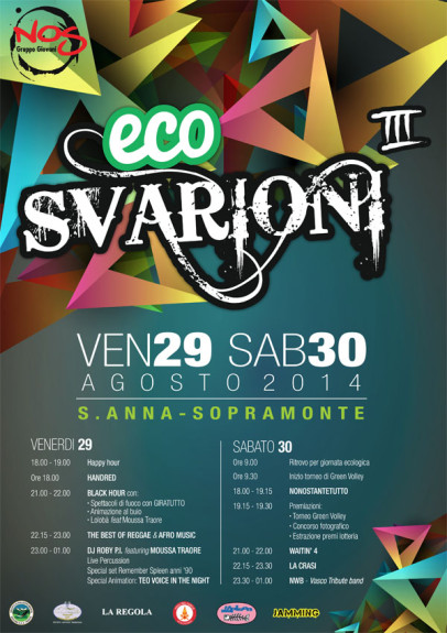 ECO-SVARIONI A? un’occasione di incontro tra musica, divertimento, sport, natura ed eco-sostenibilitA�: obbiettivo cardine A? quindi quello di ricreare un mix perfetto tra tutti questi ingredienti.